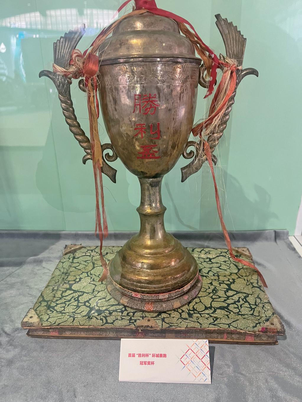 4月9日,北京半马博览会,首届“胜利杯”环城赛跑冠军奖杯。
